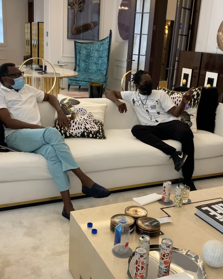 All captured in face masks as they conversed in the living room, they managed to maintain a safe distance with Otedola and Mr Eazi on one couch while the sisters sat on another couch. This was just to give his fans and followers a glimpse into how he spent his day .