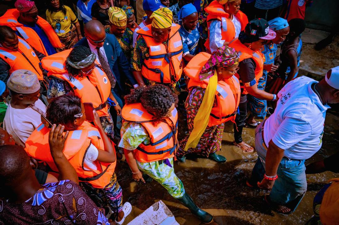 Dr. Edu, decked in a reflective jacket, navigated the affected areas with a canoe, including Agboyi-Ketu, Owode Onirin, Isheri, Ajegunle, Agiliti, Kara, Majidun, all in Kosofe local government area, and Agboyi Ketu Local Council Development Area respectively, assured the victims of immediate humanitarian response.