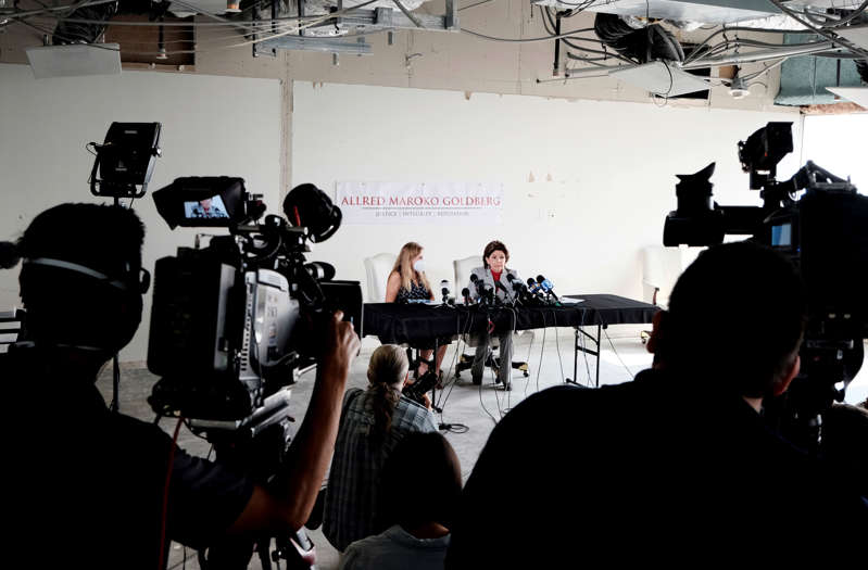 Allred announced a lawsuit on behalf of Mitchell, who was on set when a prop gun being used by Alec Baldwin went off, killing cinematographer Halyna Hutchins and wounding the film’s director. (AP Photo/Richard Vogel)It says she violated protocol by allowing guns and ammunition to be unattended during a lunch break.