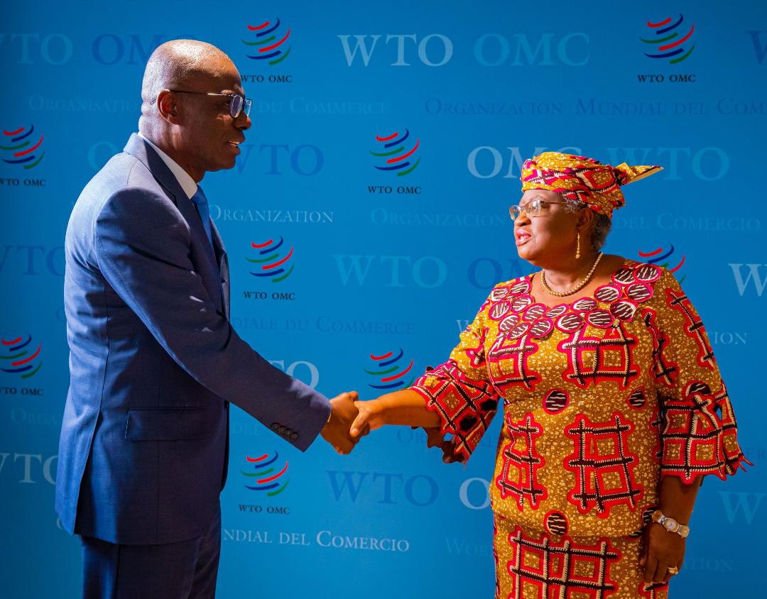 PIX 5835 L-R: Lagos State Governor, Mr Babajide Sanwo-Olu exchanging greetings with the Director-General of World Trade Organization (WTO), Dr Ngozi Okonjo-Iweala during the governor’s courtesy visit to the DG at WTO Headquarters in Geneva, Switzerland on Tuesday, 13 September 2022.