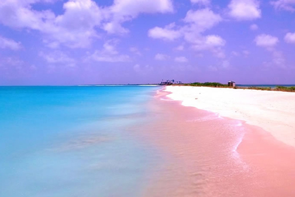 Harbour Island’s beaches with sands of soft pink hue are a hit with tourists. The pink colour of the sand comes from microscopic shelled animals called foraminifera, which live on the undersides of the reefs lining the shore. They are continuously washed up ashore by the wave, where their tiny shells impart the pink colour to the sand.